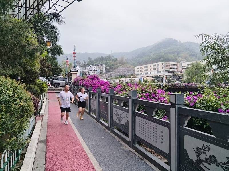 王母河畔,三角梅如火如荼地绽放,微风吹过,空气中弥漫着绿叶与花香交织的芬芳。